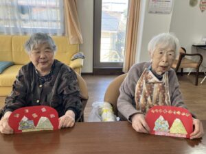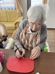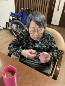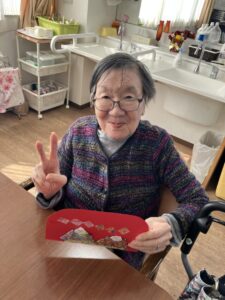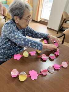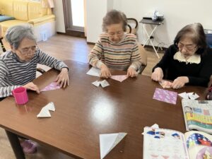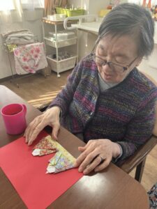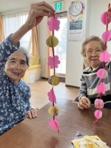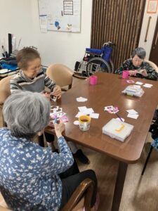 3階ではひな祭りに向けてご入居者様に制作のお手伝いをしていただいてます!