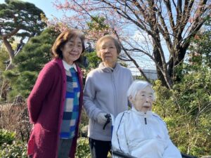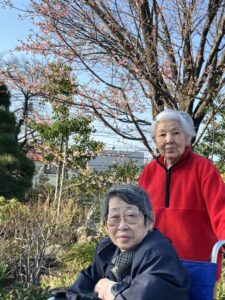 あちこちで梅の花が咲き始め、入居者の皆様と散歩に出た際に記念撮影をしました。