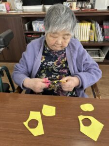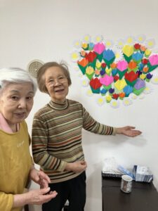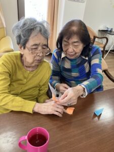 皆さま黙々と作業され「ここはこうやって折るのよ」とご入居者様同士教え合う場面も😊