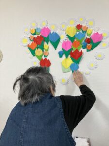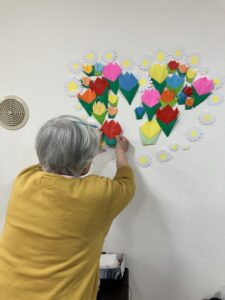 チューリップとマーガレットを壁に貼り付けていただいて~