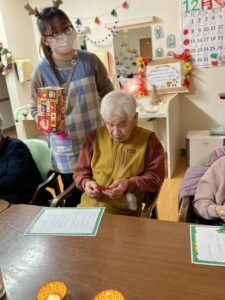 食事の後は、恒例のサンタくじです。