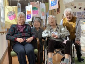 鬼と仲良くなった後は、鬼の似顔絵を廊下につるして