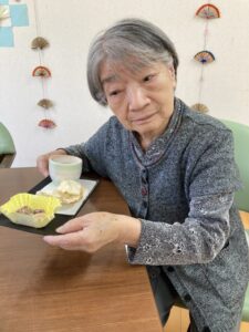 ゲームの後は、甘納豆と、甘酒を召し上がりました。
