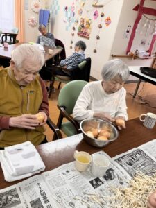 玉ねぎの皮をむいて頂いています。