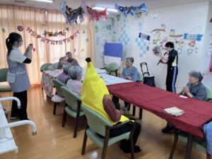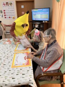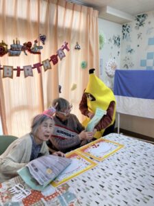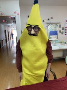 実は入居者様のI様がバナナの仮装をしてくださいました!!