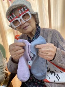 F様はスタッフの手編みの帽子と靴下👒でした!