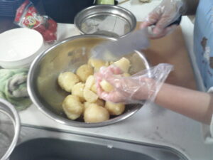 ・茹でたじゃが芋を食べやすい大きさに切る。