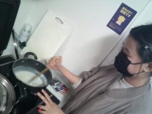 ・鍋に牛乳を入れて火にかける。