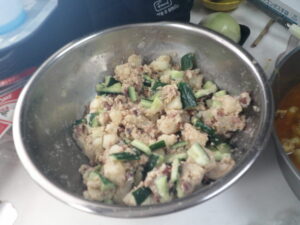・ボールに胡瓜、ミックスビーンズを入れる。
