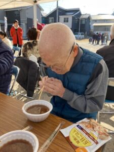 温かい豚汁や防災食の試食などがあり、おいしくいただきました。