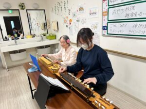 一緒に琴を弾いてくれるのは、新卒社員の渡邊さん。