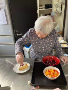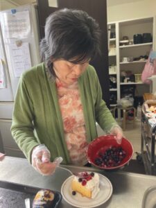 思い思いにご自身のケーキをトッピングしていきます。