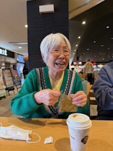 「こうやって外で飲むコーヒーもおいしいね。」とパウンドケーキをお供に召し上がっておられました。