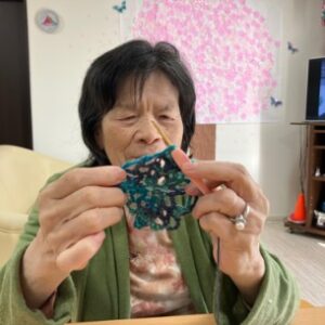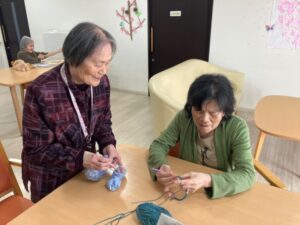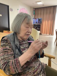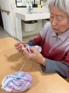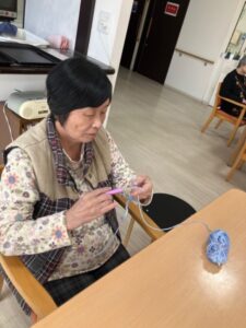 最近、2階「なじみ」ユニットでは編み物が流行中です!
