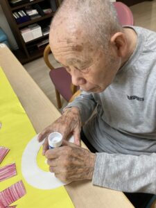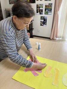 のりをつけて貼り付けます・・・