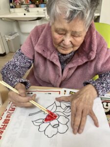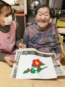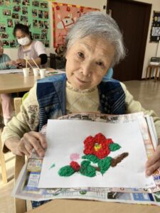 モザイクアートで「寒椿」を作成しました😊