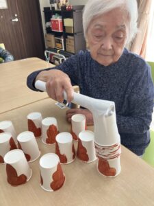 「クワ」は紙コップで出来ていて‥‥