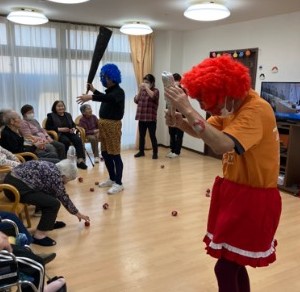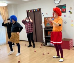 豆の代わりに新聞紙で丸めた玉を鬼にめがけ