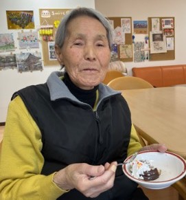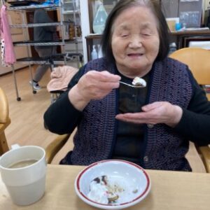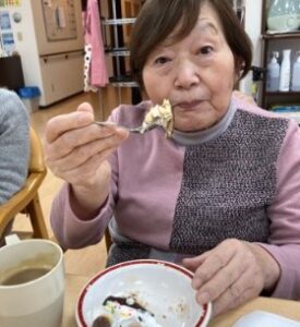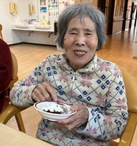 おやつには鬼型のロールケーキを美味しいく