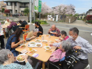 満開のさくらを見ながらお花見気分で昼食を頂きました。