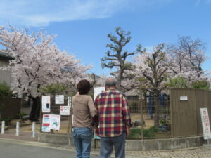 食事が終わると、さくらを見に散歩をしました。