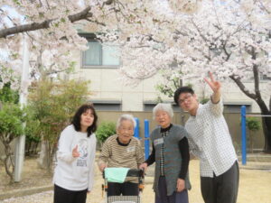 満開のさくらの下で、記念撮影をしました。やわらかな春の日差しと、咲き誇るさくらに包まれ、自然と笑顔あふれるひとときとなりました。