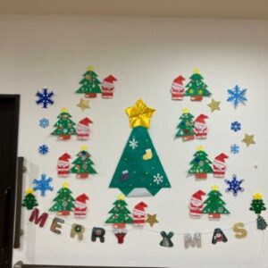 皆様と一緒に工作にてクリスマスツリー🎄に飾り付けをしました😊