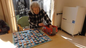 職員手作りのパズルをしています。