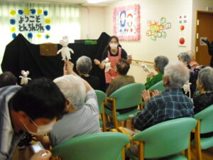 『おおきなかぶ』の人形劇では何人かの利用者様もお手伝い!!