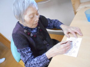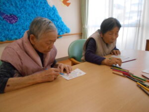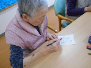 ご家族の方にお送りする年賀状の色塗りをされていたんですね!