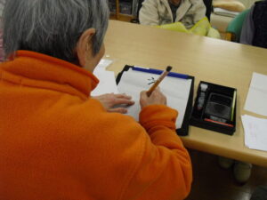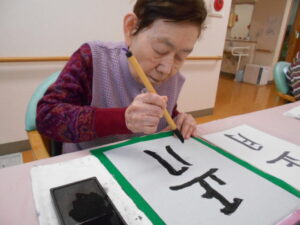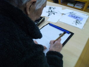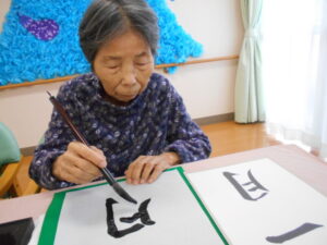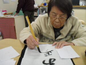 いつもお話されていて楽しそうに過ごされている皆様も書初めの時はとっても集中されていて・・・