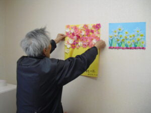 『こうやるとうまくできるよ』とお互い意見交換しながら二枚の芸術作品が完成しました。