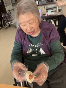 形つくり、ウインナーを入れていきます