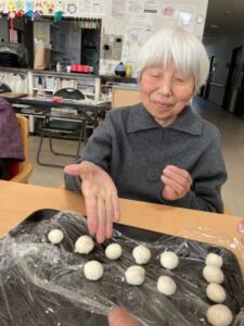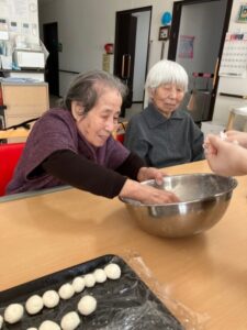 手作り白玉はあんこの汁にいれてモチモチになりました。