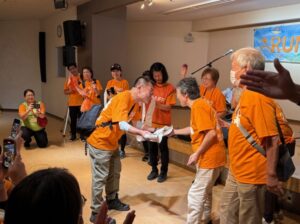 H様、たすきに名前を書いて