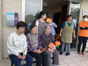 ホームの玄関で、オレンジの応援グッズを持って🥰お迎えいたしました🥰