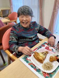 当日のお昼は、ご家族の招き、ピザやシチューなどクリスマスらしいメニューを堪能しました(^^♪