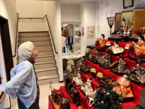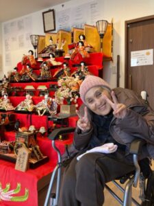 華やかな雛人形を前に、「綺麗だね」「家でも飾ったよ」と、皆様の笑顔が見られました☺