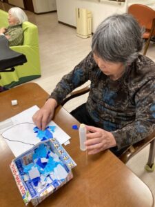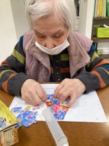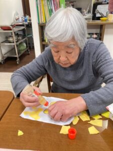 ひな祭りに向けて、まずは壁面飾り作りを皆様で行いました”