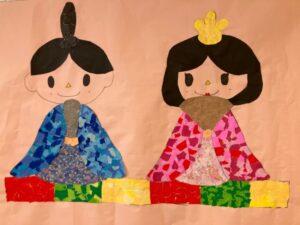 お雛様や内裏様のパーツをひとつひとつ貼り合わせて、色とりどりの素敵な作品が完成しました✨