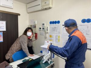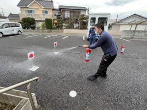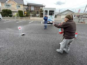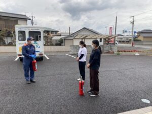 実際に火災報知器を押し、消防車を呼ぶ訓練です!