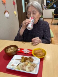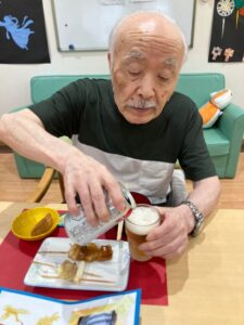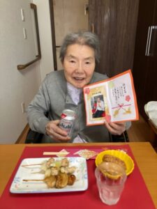 今年の敬老会では、皆様に楽しんで頂けるよう、焼き鳥、いなり寿司、豚汁、ノンアルコールビールをご用意しました🍺