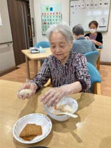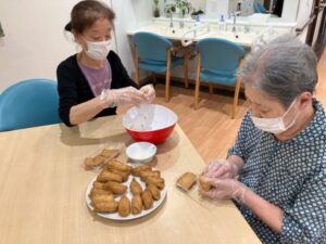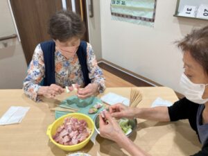 焼き鳥の準備やいなり寿司はご利用者様にお手伝いして頂きました☺