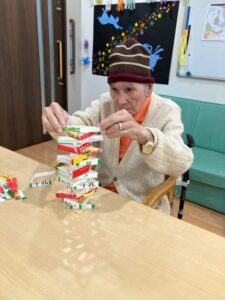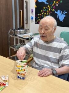 今日は、空になったジュースや牛乳のパックを使った手作りジェンガを行いました🎵