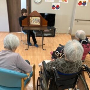 今回は、ご入居者様のご家族のボランティアでの紙芝居様子を送らせていただきます。