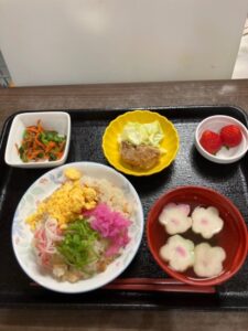 お昼ご飯は、彩り豊かなチラシ寿司をご用意✨
