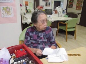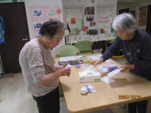 天気予報では、何やら雨が降るそうで「それは大変」と入居者様てるてるぼうずを作ると言い出し