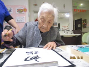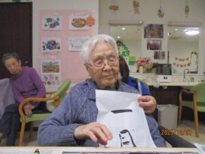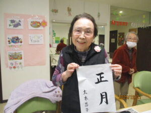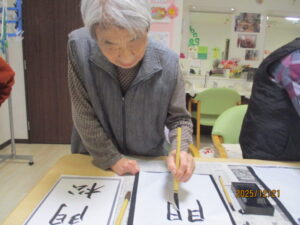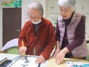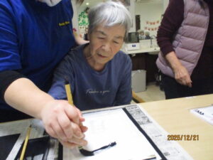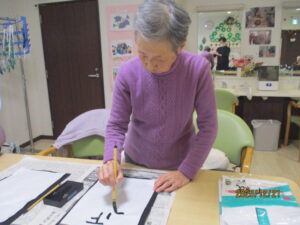 2Fつぐみユニットでは、今年最後の習字レクリエーションを行いました。