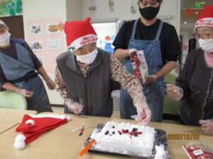 午前中に皆様と一緒にケーキ作り、午後から体を動かすレクリエーションとプレゼントお渡し会をしました。