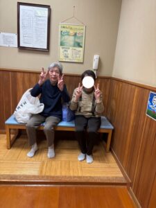 「温泉に入りたいな」入居者様の願いを叶えたい思いから今回外出に至りました。今後も入居者様の願いを叶えられるようご支援させて頂きたいと思います。